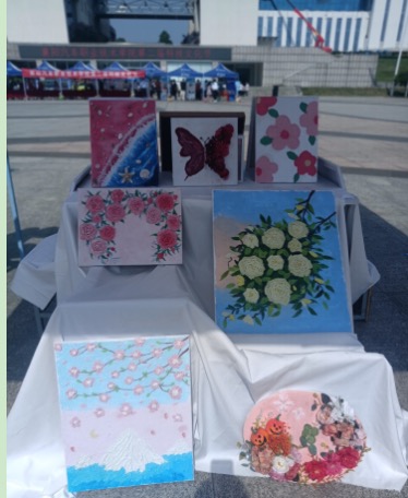 为了展现襄阳汽车职业技术学院学生的青春洋溢,梦想飞扬的精神风貌,提升学生的审美素养和文化自信。本次展览以花为主题进行创作,创作题材涉及手工簪花,布贴画等中国传统非遗文化。通过不同材料间的触碰,展现花的层次感、空间感、立体感。此次展览不管是绘画制作还是创意手工都展现了学生的创新精神、工匠精神。