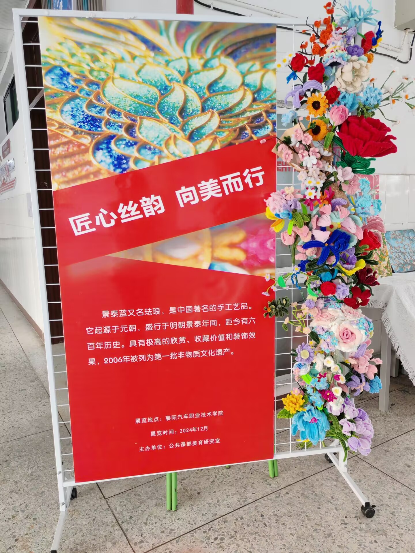 为了深入学习贯彻党的二十大精神和美育浸润通知文件精神,引导小学生感受和传承非遗文化,培育高职学生的工匠精神。2024年12月18日,公共课部美育研究室举办了掐丝珐琅主题艺术展。