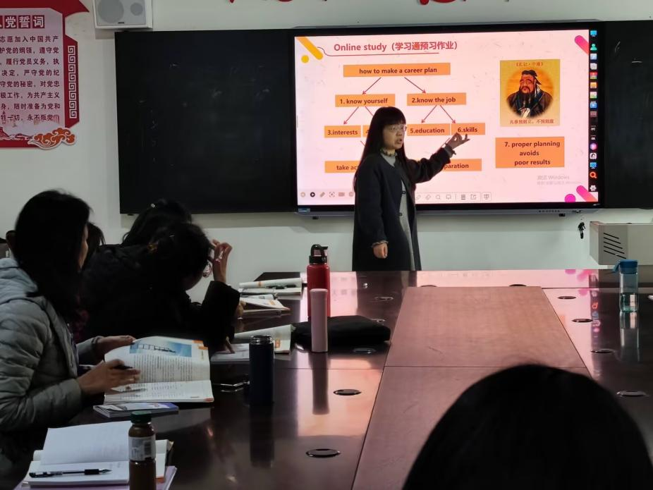 潜心教学勤探索,深入教研促提升。为深入推进混合式教学模式,打造高效课堂,3月13日下午,英语研究室全体教师在公共课部会议开展了一场别开生面的集体备课活动。本次活动聚焦Unit 5 Career Planning,力求在英语教学与职业规划的交汇处,为学生铺就一条通往未来职业成功的康庄大道。