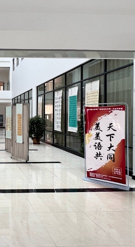 2025年9月15日,为弘扬中华优秀传统文化,由语言文字工作委员会与公共课部美育研究室联合主办的“美美语共,天下大同”主题书法展在图书馆一楼举行。