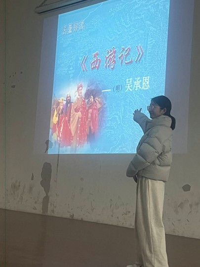讲座中,主讲人以清晰的逻辑脉络,从《西游记》的“前世今生”讲起,结合吴承恩的生平经历与明代社会思潮,系统梳理了作品从民间传说到章回体小说的演变历程,并向学子们推荐了人民文学出版社版等权威阅读版本。在核心人物解读环节,主讲人摒弃“脸谱化”分析,深入剖析了孙悟空“从桀骜不驯到成熟担当”的成长弧光、唐僧“执着与迂腐并存”的矛盾特质、猪八戒“世俗化人性”的真实写照,以及沙僧“沉默担当”的团队价值,引导学子们从“人物成长”“人性思考”的角度重新审视经典。