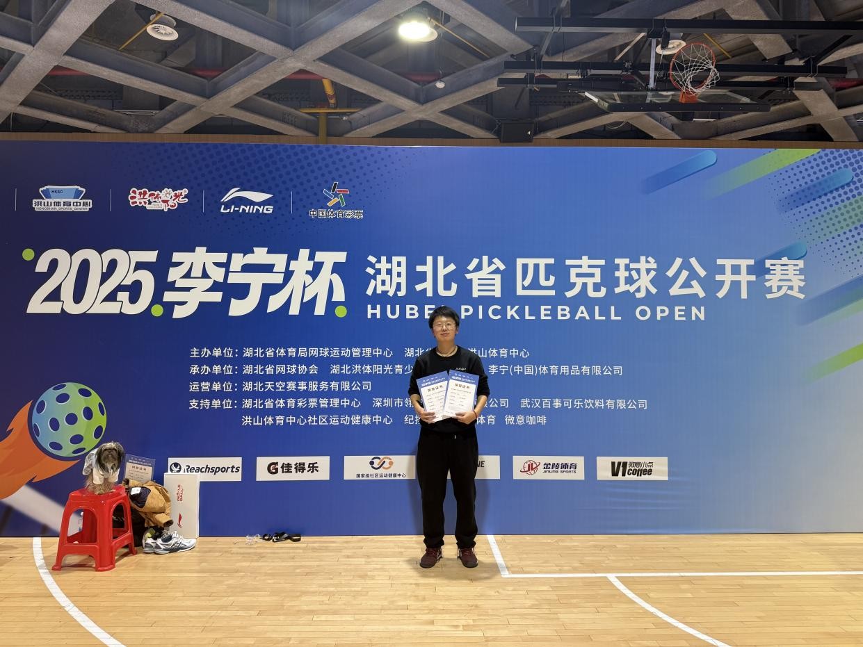 2025年12月27日-28日,2025年“李宁杯”湖北省匹克球公开赛在洪山体育中心圆满落幕。公共课部体育教师丁怡珺凭借精湛技艺斩获佳绩,一举夺得乙组女子双打第一名、乙组混合双打第三名,充分展现了我校体育教师扎实的专业素养。