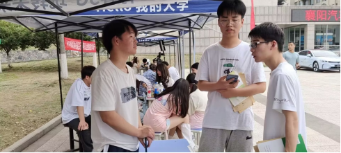 2023年5月18日在襄阳汽车职业技术学院的红旗广场上,数学建模协会等社团面向全校同学进行招新活动,同学们踊跃报名。