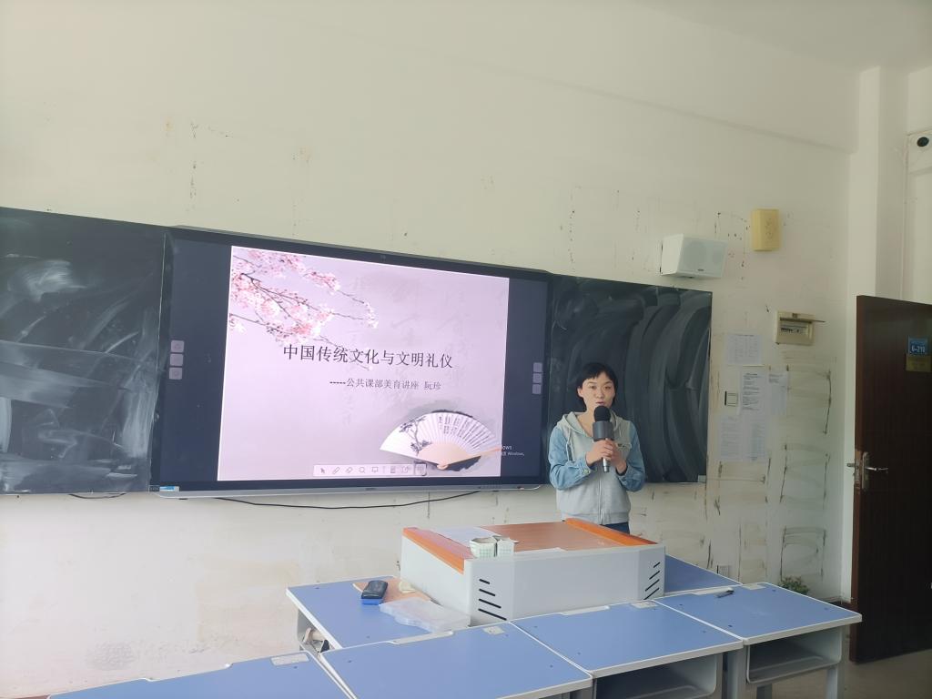 2024年4月17日下午,由公共课部美育教研室举办的“中国传统文化与文明礼仪教育活动”专题讲座在汽车工程学院6-210多媒体教室开展,新能源2308班的学生参与聆听了这次讲座。美育教研室阮珍老师为本次讲座的主讲人,讲座在教研室主任何莎老师的致辞中拉开序幕。