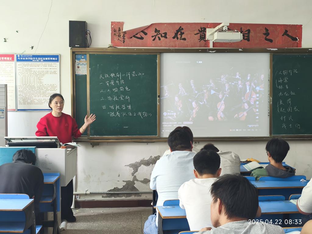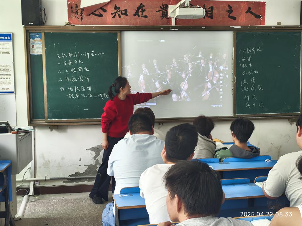 2025年4月22日上午1-2节,在汽车工程学院智能2402班的6-304教室,一场关于民族歌剧《沂蒙山》赏析的讲座在此举行,本次讲座由公共课部美育教研室主办,阮珍老师主讲。旨在带领学生深入了解这部极具影响力的民族歌剧,感受其蕴含的深厚情感与艺术魅力。
